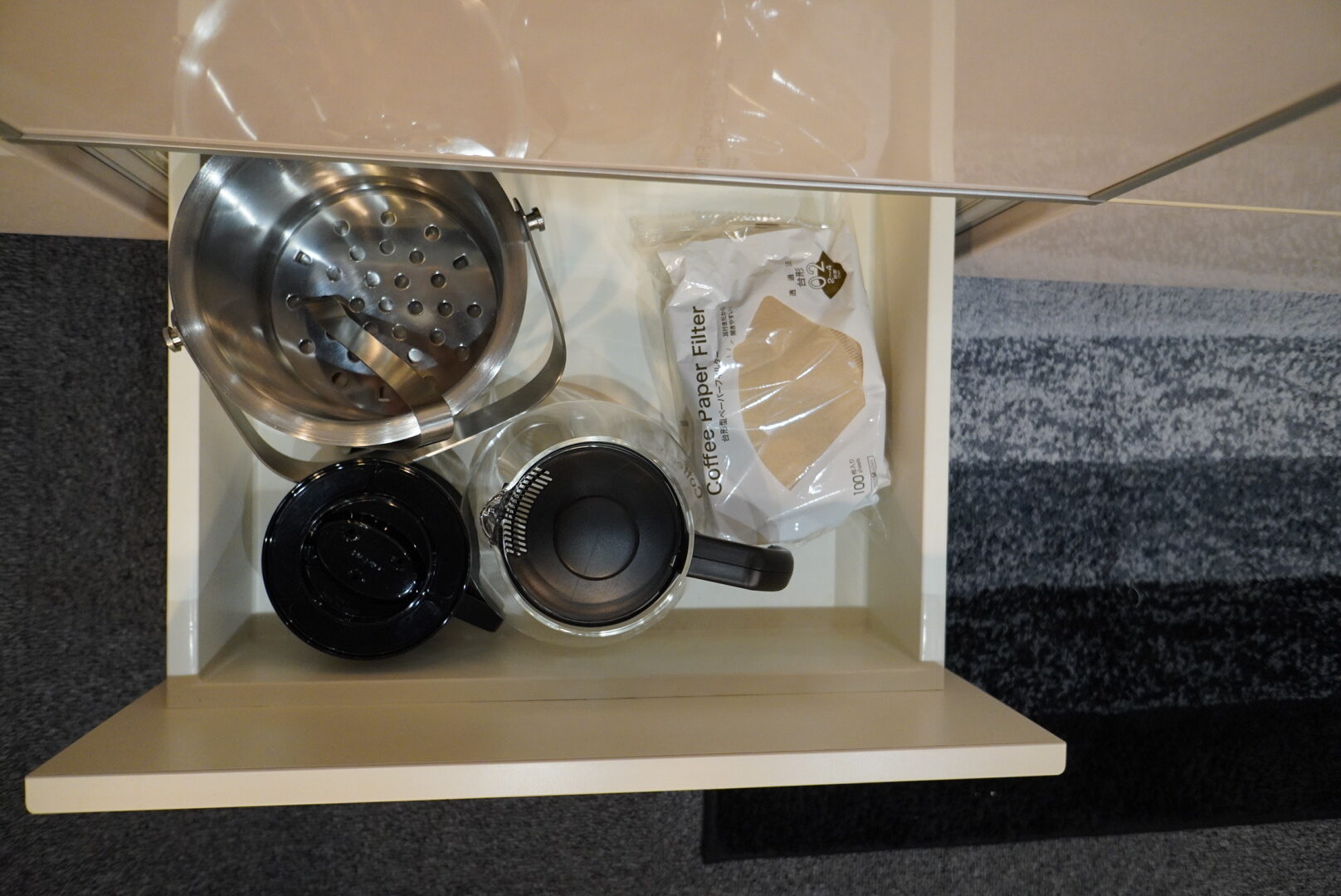| キッチン用品 | 食器、鍋、フライパン、調理道具(菜箸など)、カトラリー、食器用洗剤、製氷トレイ、ボウル、ザル、ドリッパー、コーヒーフィルター、ラップ、アルミホイル、アイスペール、ワインクーラー、ソーイングセット |